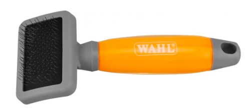 The small Wahl curry brush for your cat, dog or small animal. It untangles the knots of the coat and eliminates dead hair. It has a comfortable ergonomic gel handle that has a good grip. The needles are stainless steel and close together ideal for smoothing the coat.