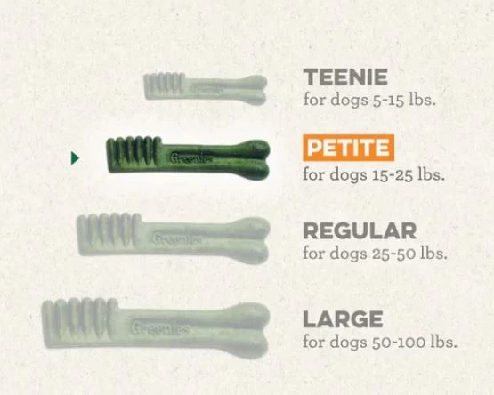 Give one Greenies dental treat per day to your dog weighing between 15 and 25 lb.