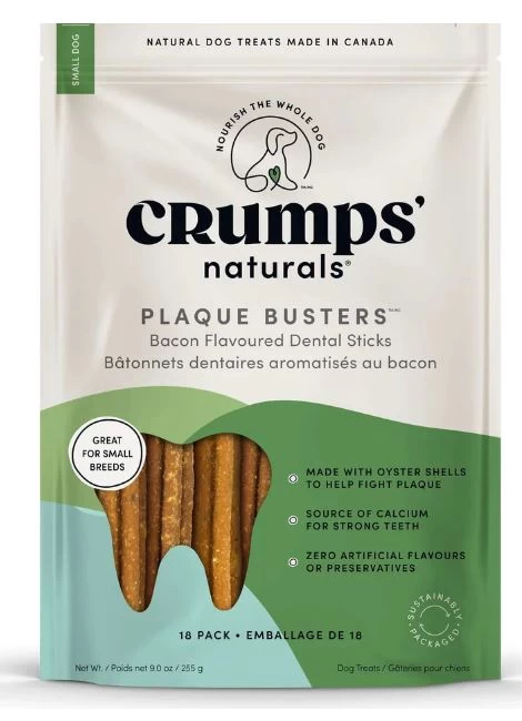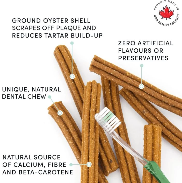These bacon-flavored dental sticks are a fun way to keep your dog’s oral health in check! Their irresistible scent entices dogs to indulge in these treats, while the finely ground oyster shells work effectively to reduce plaque and tartar on their teeth.
