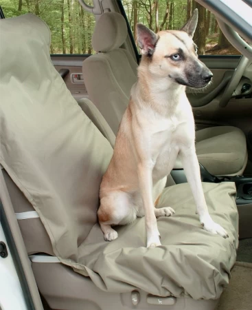 The elastic base of the Petsafe Dog Car Bench Cover allows for a snug fit on the seat while protecting against dirt and hair. Made of heavy gauge polyester with a waterproof backing for years of use. Several elastic straps to keep the cover securely in place in all vehicles with headrests.