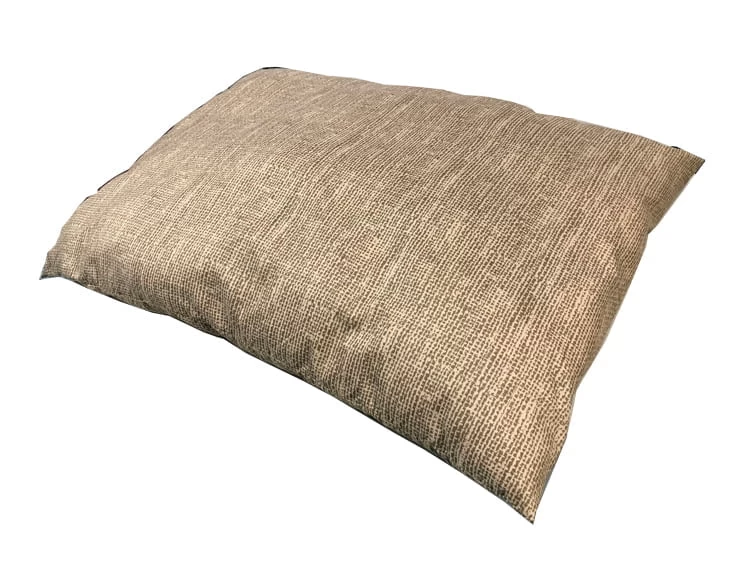 A plush cushion 100% polyester soft and spotted brown and tan. Your doggie will enjoy his cushion naps.