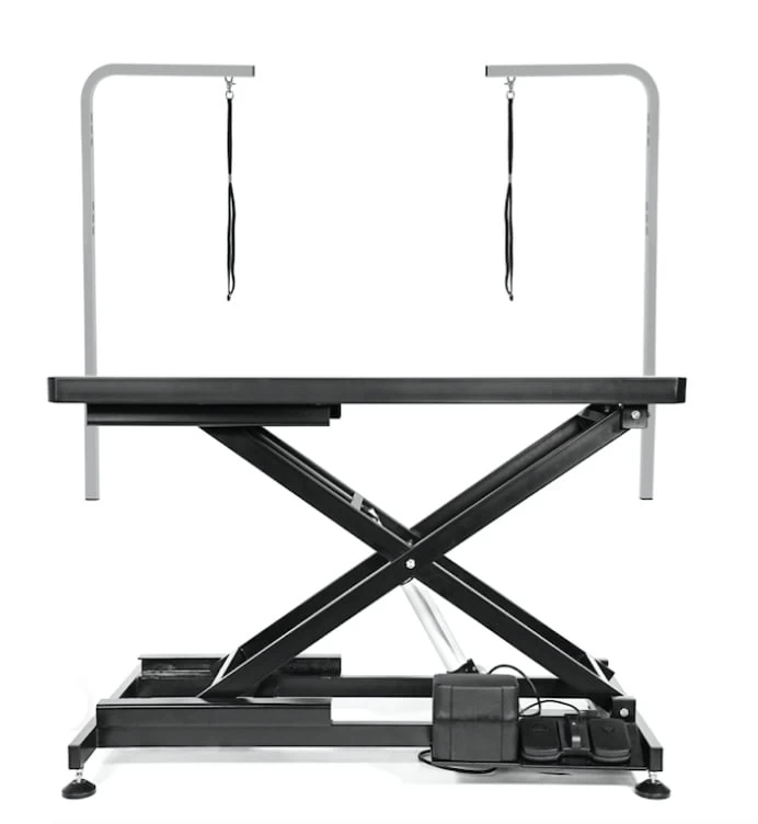 Height adjustable from 10 1/4 to 36 1/4 inches, foot switch for hands-free operation.