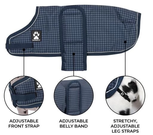 The Shedrow K9 Expedition Cape Style Dog Coat is a warm, wind and water resistant adjustable coat, also having a reflective stripe for visibility on evening walks.