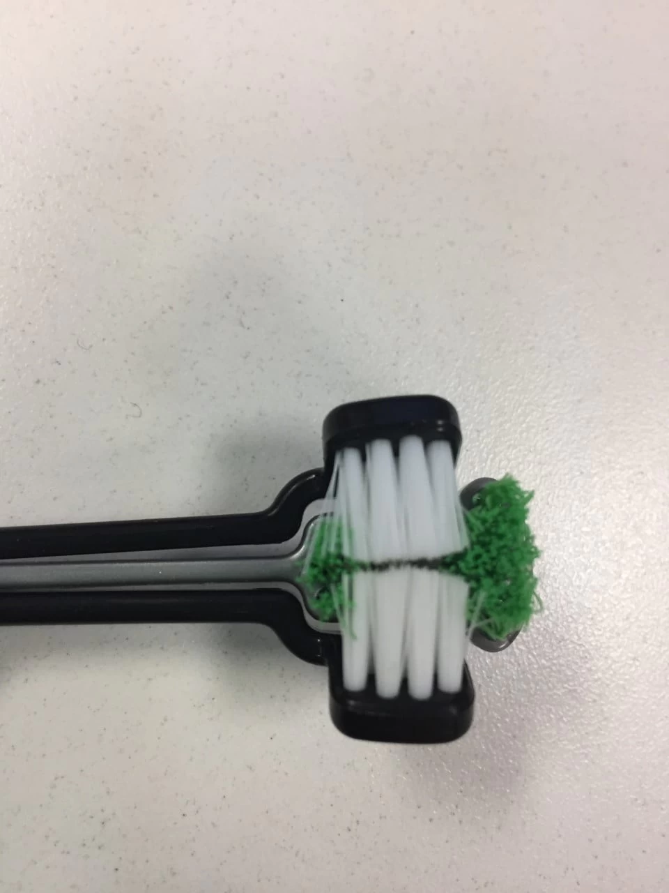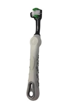 The tip used for brushing teeth is separated into three independent branches. In this way, the brush molds and follows the shape of the teeth providing a safe and comfortable cleaning for the animal.