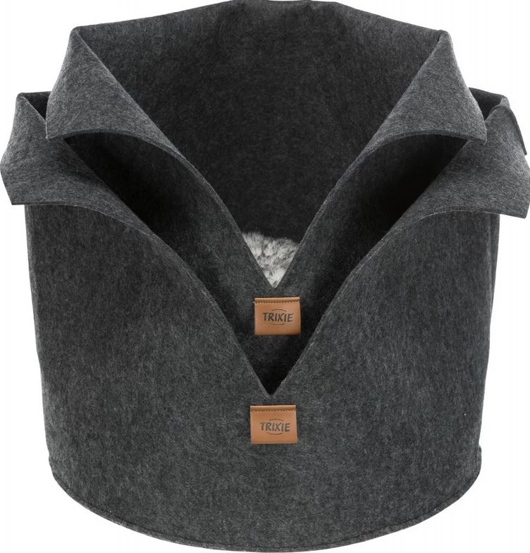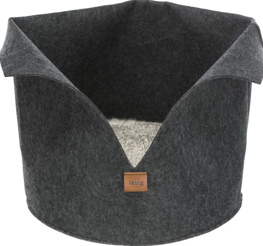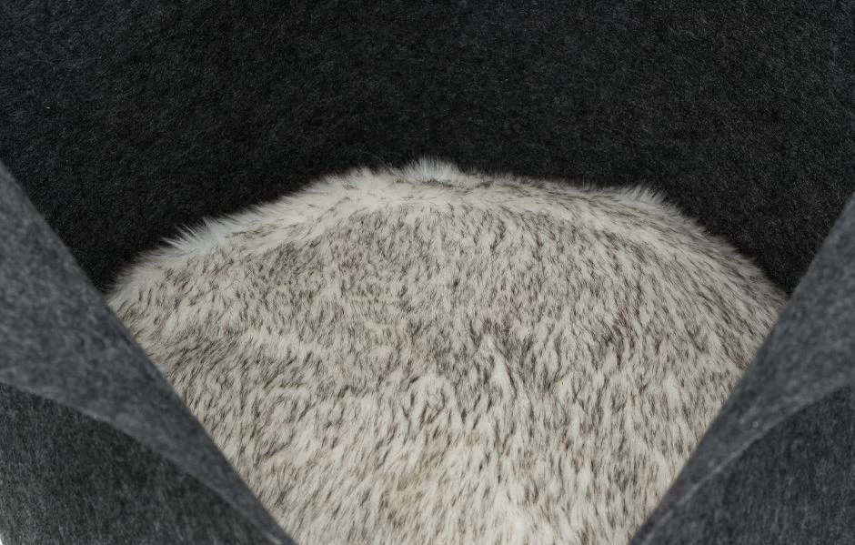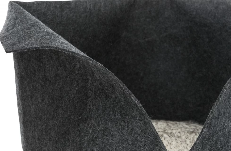 This round and oval felt bed will keep your pet warm with its high rim. Its removable cushion is removable and reversible with a plush side with long hairs. A comfortable round and oval dog and cat bed and cushion.
