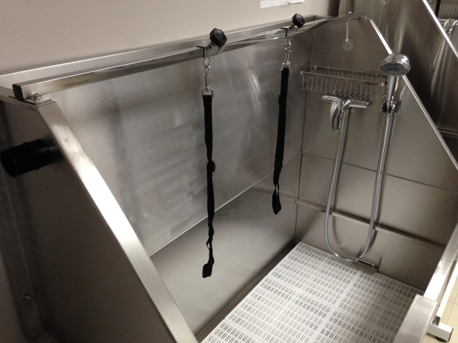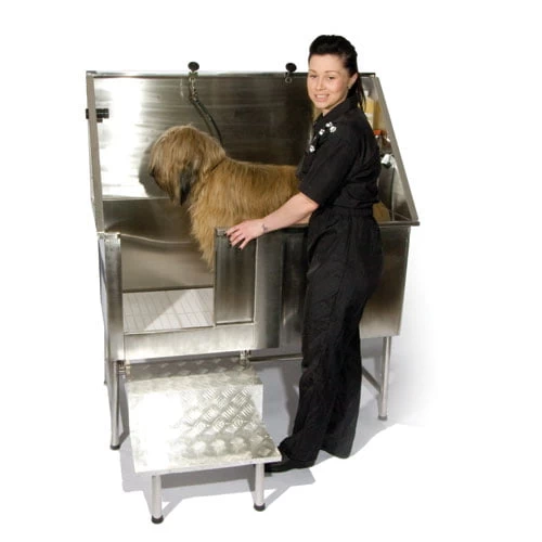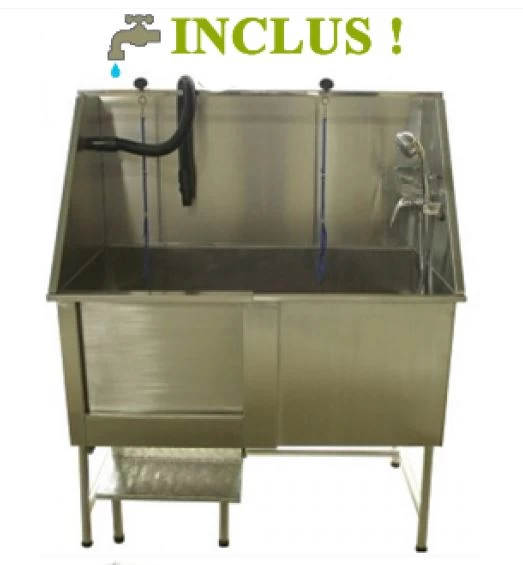 The construction of this stainless steel (304) bath has many features designed to make it easy to use when bathing all sizes of dogs. The floor of the bath is adjustable, it can be lifted for cleaning small animals. The grooming bath is also supplied with a grid, which keeps the animal out of the water and allows more efficient rinsing. Use with the grid up to 100 pounds, without the grid up to 200 pounds. The faucet is included free of charge with this bath. Faucets are not guaranteed. In some areas, there may be additional charges for delivery. Stainless steel grade is 304 Dimension: BACK HEIGHT: 57,75” WIDTH: 50″ WIDTH DEPTH: 27.5″ DEEP BOTTOM OF THE BATH: 17 BOTTOM OF BATH WITH FALSE FLOOR: 24,5”