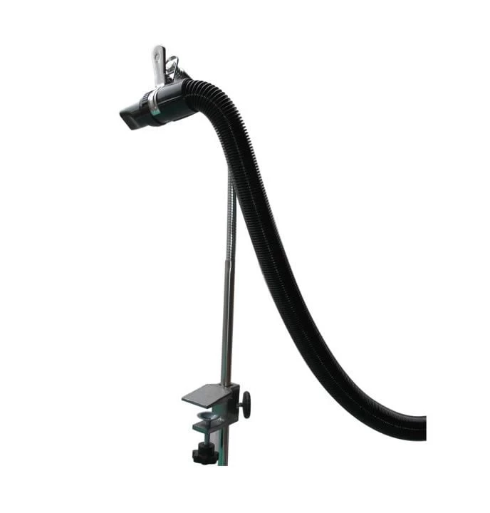 The 33 inch grooming pole is used to support the grooming dryer hose to free up hands. This Gain Grooming clip-on grooming dryer holder has a flexible part to properly orient the nozzle towards the animal. Frees up your hands to do the work on the animal.