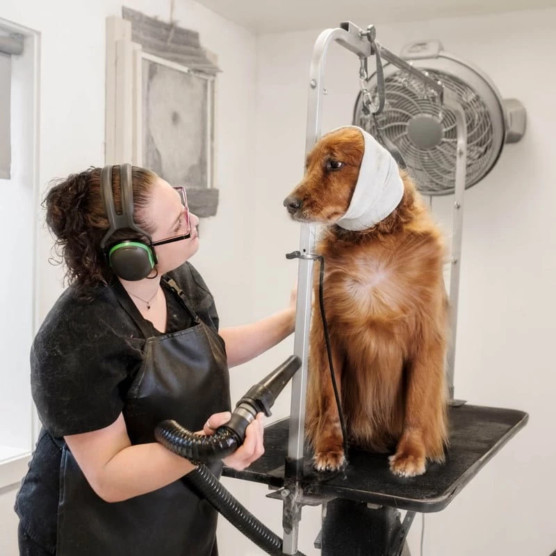This tube collar from brand Happy Hoodie is perfect for dog and cat grooming. It helps reduce pet anxiety by reducing noise during grooming such as the dryer and clippers.