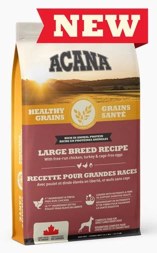A large breed dog food made with healthy gluten-free grains and high in fiber like oats, millet and sorghum. It contains chicken, turkey and eggs. This food promotes healthy digestion.