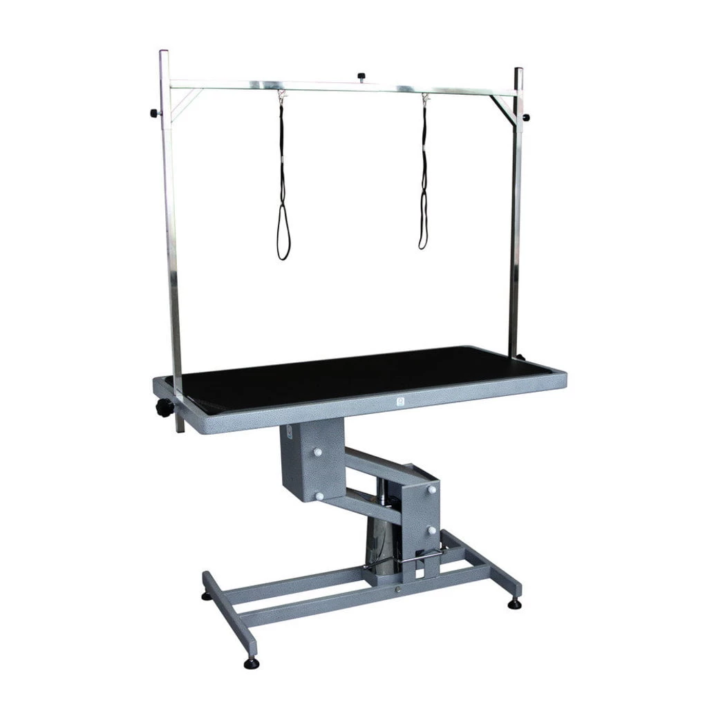 The hydraulic grooming table is a rugged grooming table designed with a “z”-shaped frame that eliminates flickering of the table and prevents tipping. The robust all-metal frame is designed for longevity and durability. The epoxy finish in an anti-static oven adds a finish that is both elegant and durable. Grooming arm supports integrated at both ends of the table allow flexible grooming installations and great versatility. The superior “Italian Style†hydraulic pump is built to last. Details: Adjustable table from 19 “” to 39 “” Table size 25.5 “” by 49.5 “” Can accommodate up to 200 lbs pets 2 sliding grooming straps and adjustable floor levelers
