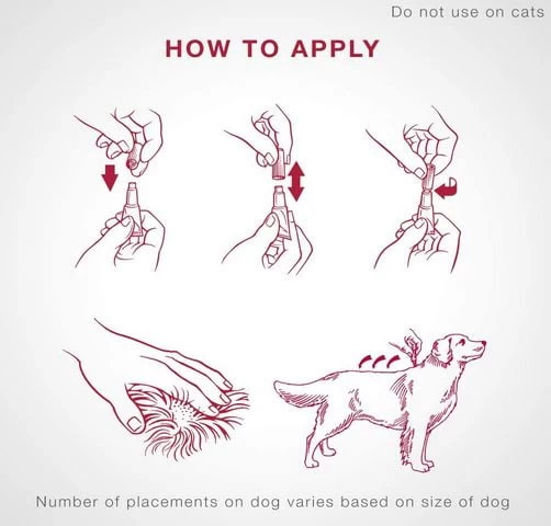 The product is in an applicator tube with a dose previously measured according to the weight of 11 to 25 kg of the dog. It spreads on the skin, to provide protection against fleas, ticks, mosquitoes and lice all over the body. Do not rub to penetrate the product; let it dry naturally. Apply the entire contents of the tube.