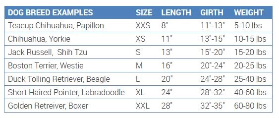 Manufacturer’s chart (see photo) is for dog references.