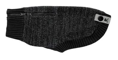 The black knit Polaris Sweater by Rcpets is knitted with reflective yarn for safe walks with your dog. The sweater has a two-way zipper for easy donning. Its high collar keeps your dog warm. It has a logo label with integrated LED “Poppin ‘light” grommet (sold separately). Its maintenance is easy with its machine wash and flat drying.