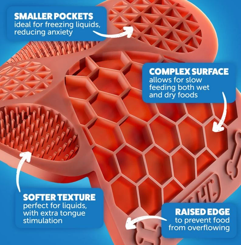 Encourage good behavior and oral health with every lick. The textured surface of our Lick Mat helps clean teeth and stimulate saliva production, promoting fresher breath and better dental hygiene.