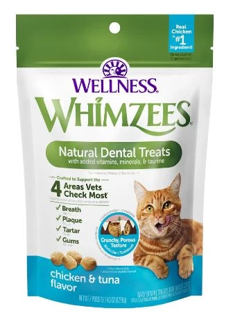 Take care of your cat’s teeth while treating them to an irresistible snack with Whimzees Chicken and Tuna. Made with natural ingredients, these treats help reduce plaque and tartar while satisfying your feline’s taste buds.