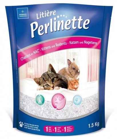 This Perlinette litter for kittens and small animals is very absorbent with an absorption rate of 180% and traps odors for several weeks. Easy to use. The litter does not stick to the paws of the kittens.