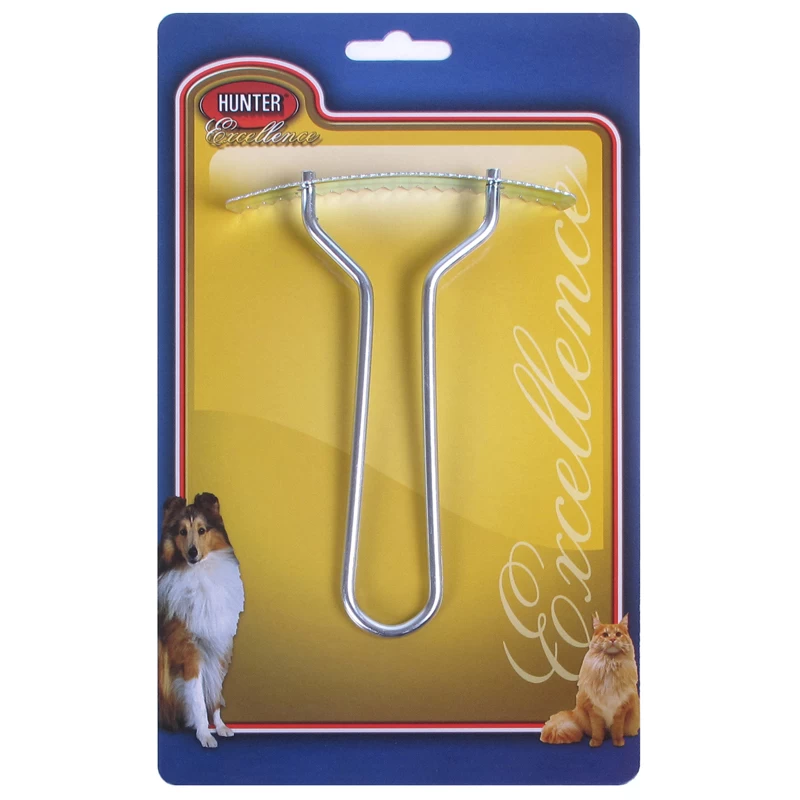 The Hunter Saw Style Grooming Rake is a tool designed for the efficient grooming of fur-bearing animals. Its unique shape is reminiscent of a saw, with spaced teeth that allow dead hair to be removed effectively without damaging the skin. Made from durable materials, it ensures a comfortable grip thanks to its ergonomic design.