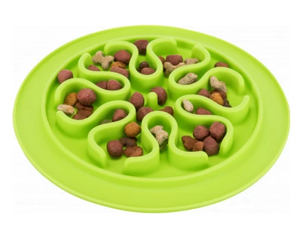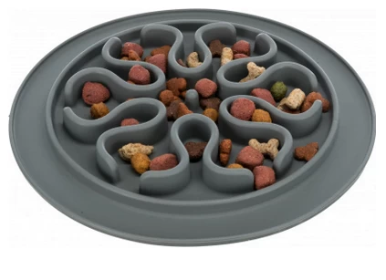 This anti-greedy bowl for cats or dogs from Trixie is made of silicone and allows your pet to eat less quickly since the food hides in the grooves. This bowl can accommodate dry or wet food and is non-slip.