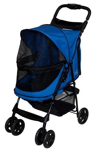 This Happy Trails Lite No Zip dog and cat stroller from Pet Gear has an easy lock and large wheels. The lack of zippers means there’s no hassle when trying to open and close the stroller. New NO-ZIP technology means you can easily access your dog or cat without worrying about zippers! The Happy Trails NO-ZIP Stroller also features a raised footrest.