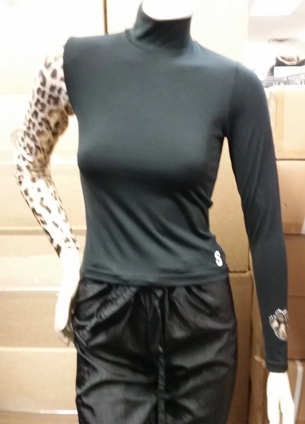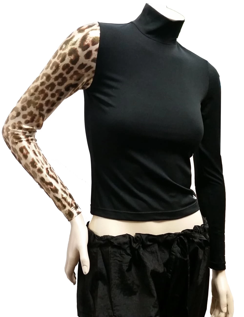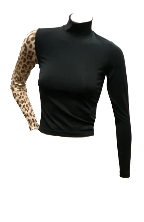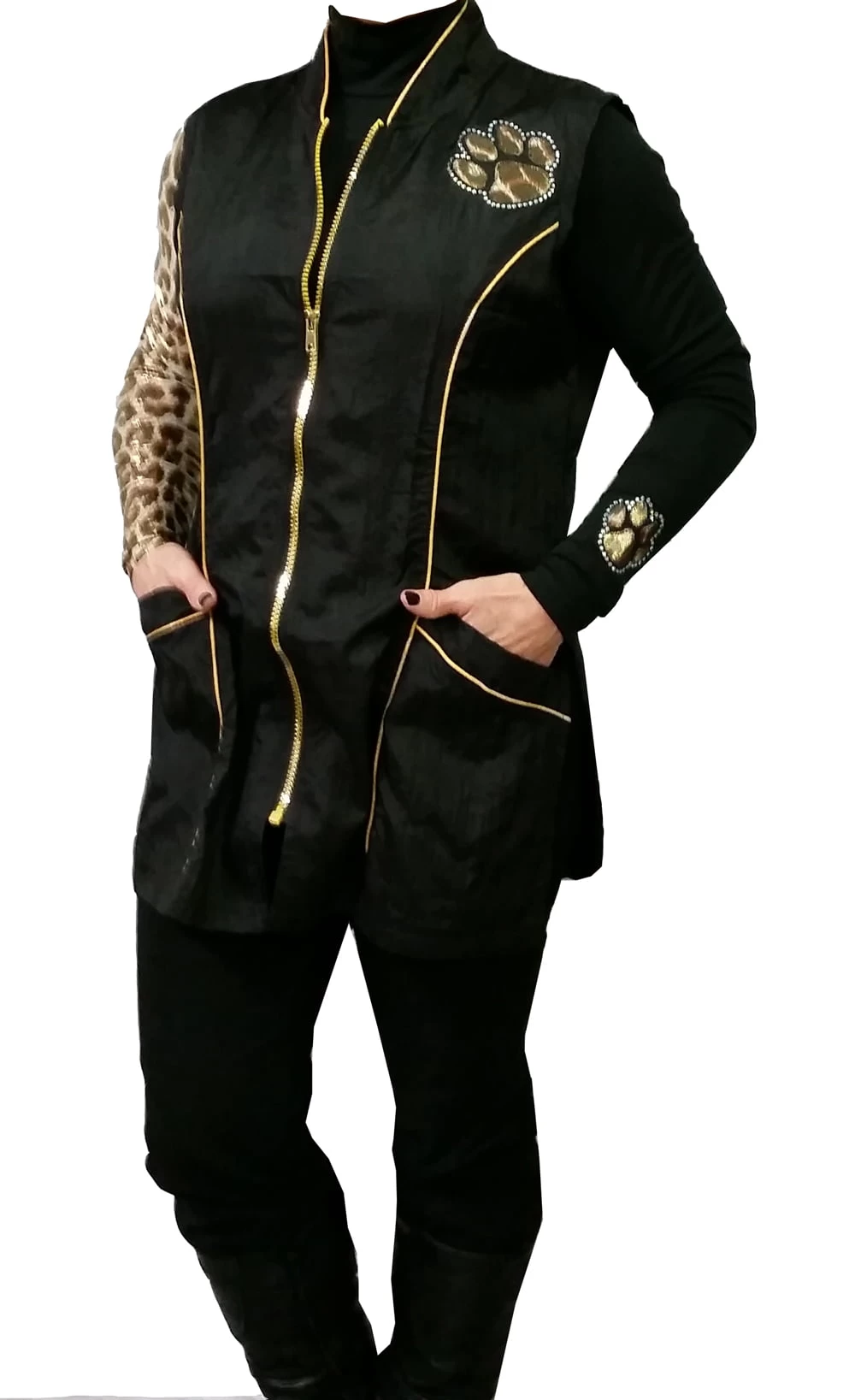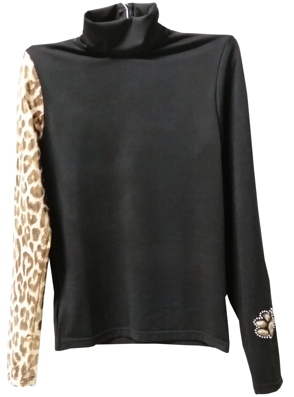 Cougar black nylon sweater for grooming, Stylized with its printed sleeve and its appliqué of a paw on the other sleeve. This sweater worn with the Princess sleeveless smock from the same collection makes a chic outfit that stands out from the usual smocks.