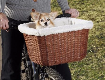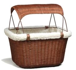 This Tagalong bicycle basket is made of wicker and has a removable faux sheepskin lining for your petβs comfort. It has a sun visor that keeps your dog or cat cool and it is removable. The adjustable leash keeps your pet safe. The support has 3 settings.