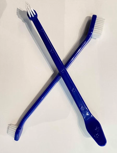 The set of toothbrushes for your pet has two head sizes to allow effective cleaning. The toothbrush has larger bristles on one side and smaller bristles on the other. Thanks to its two sides, you can reach the internal and external surfaces of each tooth at the same time.