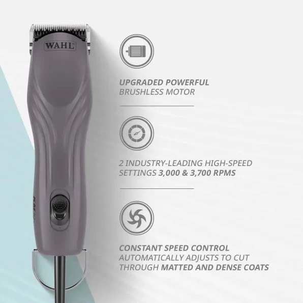 The Wahl KM10+ grooming clipper is a professional tool designed to offer performance, durability and comfort. Equipped with an ultra-powerful brushless motor, it ensures a smooth and consistent cut, ideal for thick and matted hair. Its ergonomic design reduces hand fatigue, even after prolonged use. With two adjustable speeds, it adapts to all types of coat. Lightweight and quiet, it guarantees precise and efficient grooming. Its detachable blade system facilitates maintenance, making the Wahl KM10+ a preferred choice for professional groomers.