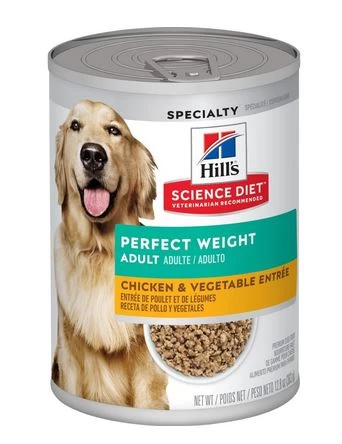 This dog canned chicken and vegetable entrée is for adult dogs for weight management. It allows you to lose and maintain your dog’s weight. Weight loss is visible in 10 weeks. It supports muscle mass.